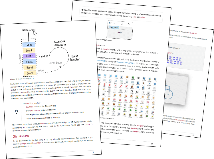 I've been developing Python desktop applications for 8 years using Qt. It's a great way to create professional and portable apps with Python. But when you're starting out, it can be tricky to know where to start. In this book I've collected everything I wish I'd known when I started & the most useful things I've learnt since.